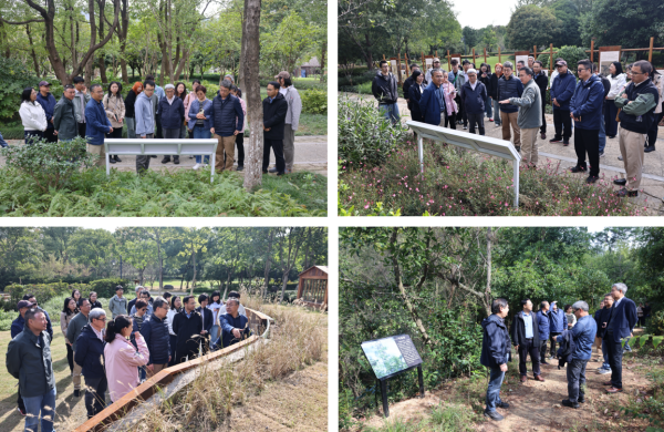 會議后,項目跟蹤專家、評議專家以及項目組成員考察與核驗了項目在杭州的示范地以及城市生物多樣性示范地的野外參照試驗地。