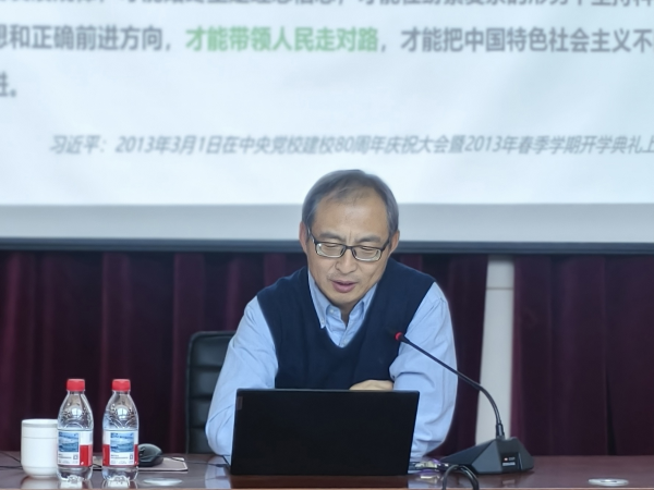 王宗明以《好好學習提升馬克思主義理論素養》為題,從為什么只有馬克思主義才能救中國、為什么要學習馬克思主義入手,重點闡述了毛澤東思想的形成背景與形成過程、主要內容、活的靈魂、歷史地位與影響等,引導廣大師生牢記習近平總書記的囑托,守好崗位,做好本職工作,為實現第二個百年奮斗目標、實現中華民族偉大復興作出自己應有的貢獻。王宗明結合自身深厚的理論知識,引用大量生動的歷史資料和經典文獻,深入淺出地闡述專題內容。特別是在講課的過程中,他運用人工智能大模型及科研項目列表等研究方法,分析當前科技工作者、研究生應如何抓住主要矛盾,明確奮斗方向。報告視角新穎,引人入勝。課堂上,王宗明時刻關注與師生的交流互動,引導大家結合所學進行思考,課堂氣氛嚴肅活潑,不時響起熱烈掌聲。