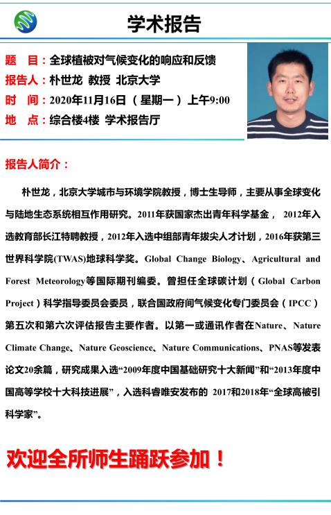 學(xué)術(shù)報(bào)告通知—樸世龍