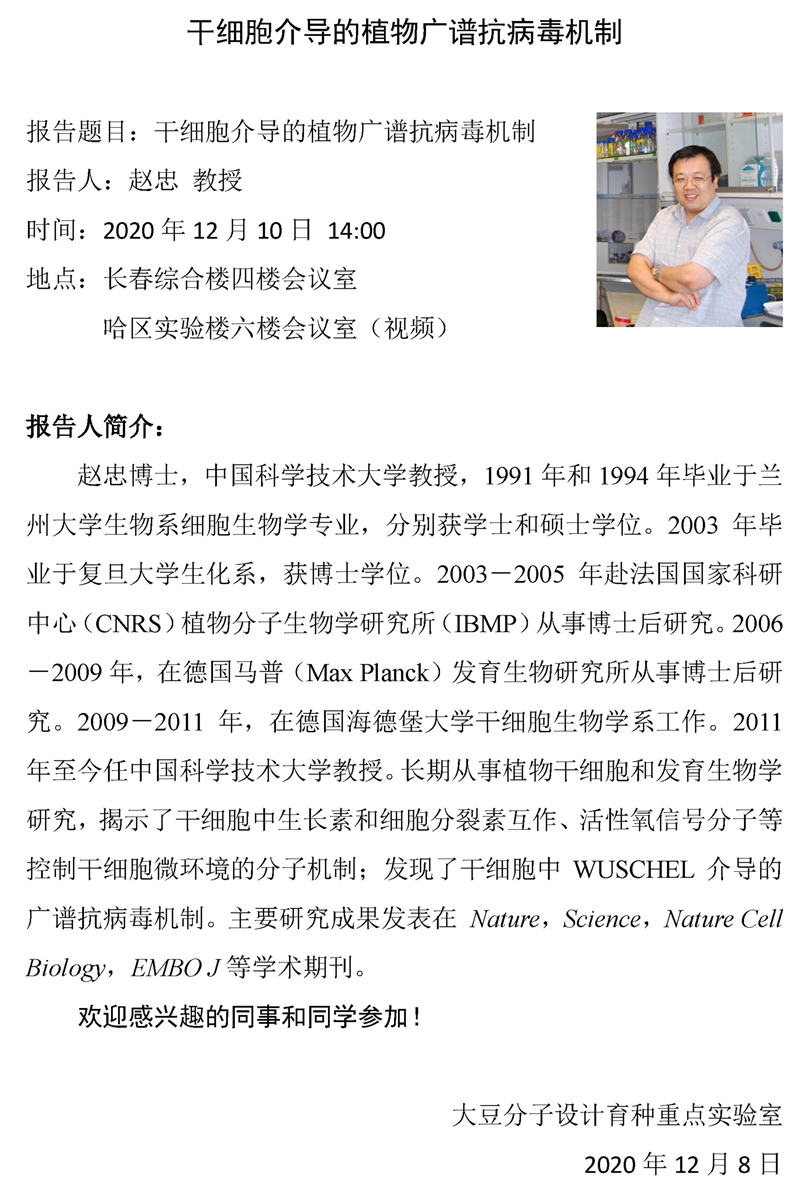 植物干細胞介導的抗病毒免疫機制-趙忠 教授