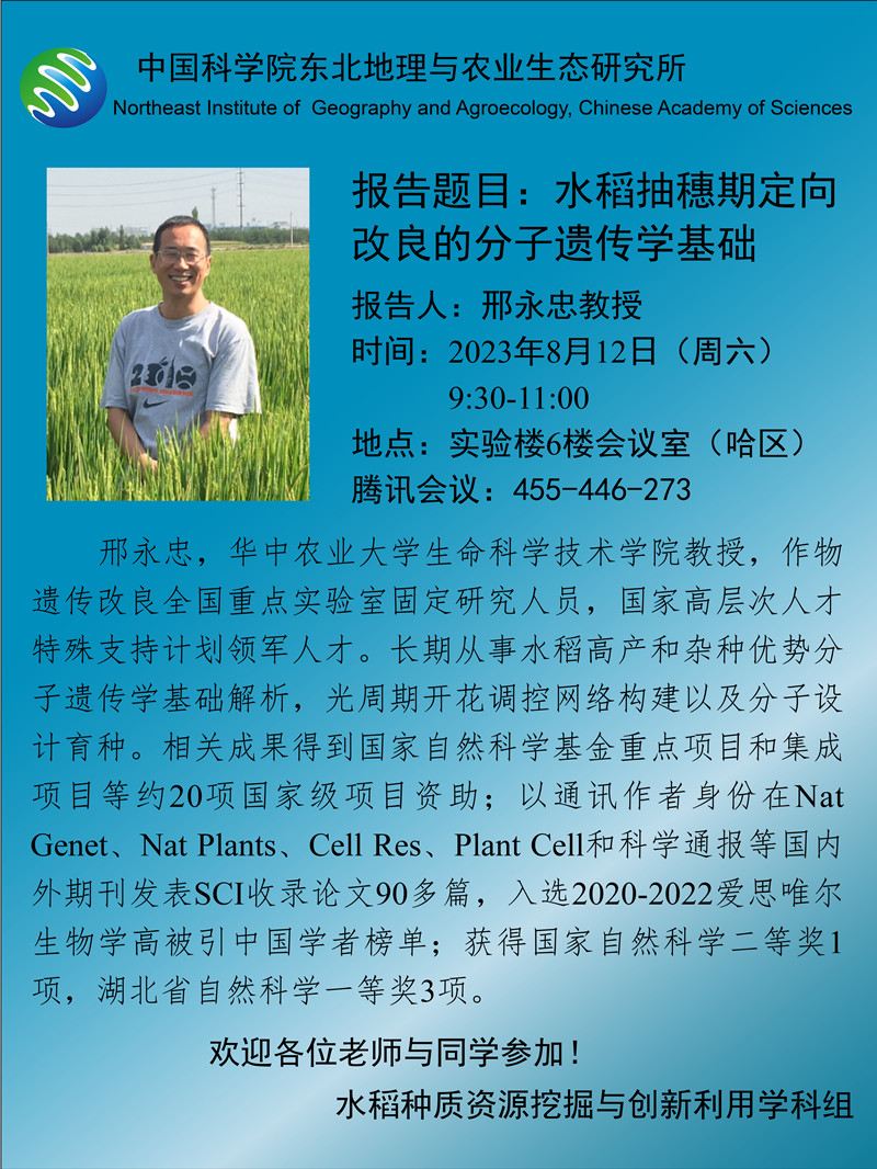 水稻抽穗期定向改良的分子遺傳學(xué)基礎(chǔ)-邢永忠 教授