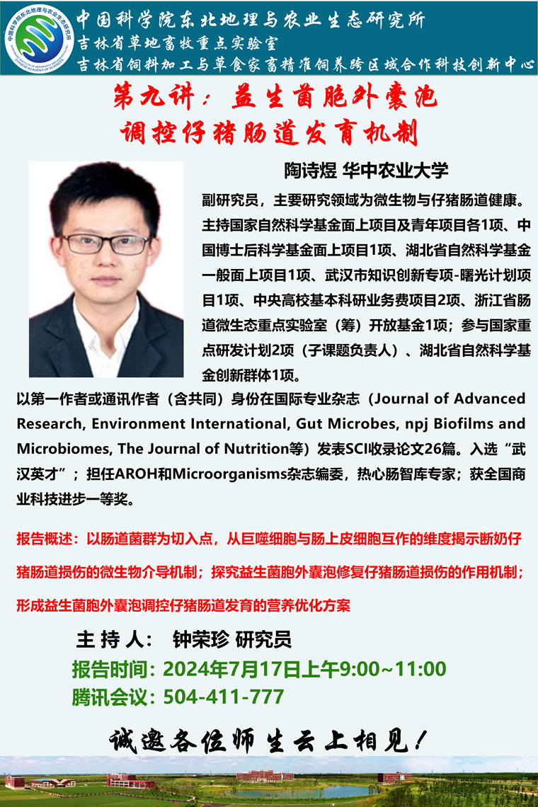 益生菌胞外囊泡調控仔豬腸道發育機制-陶詩煜 副研究員