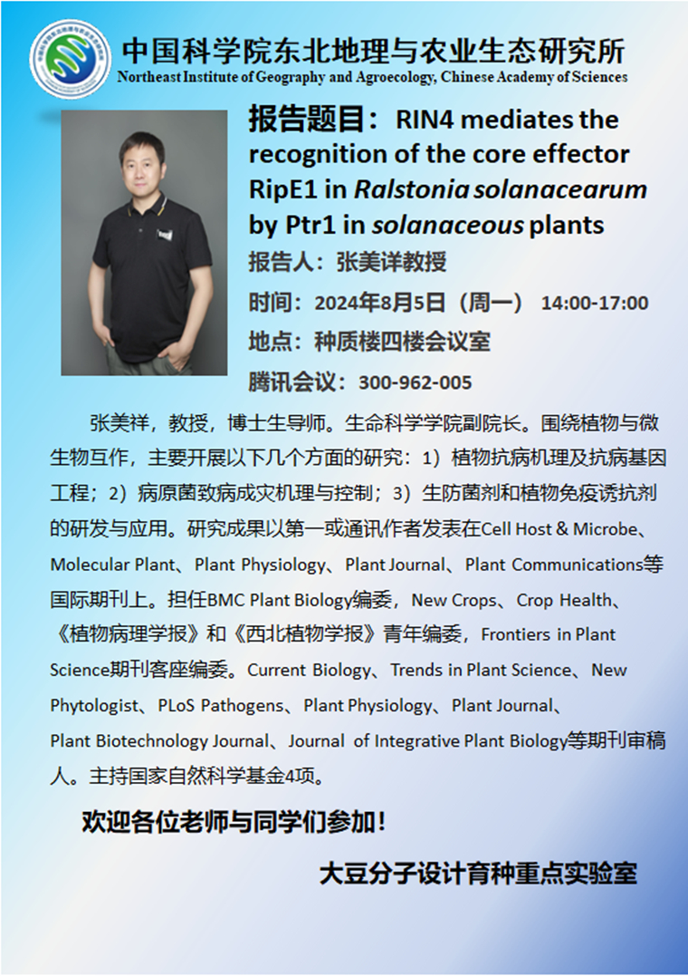 RIN4 mediates the recognition of the core effector RipE1 in Ralstonia solanacearum by Ptr1 in solanaceous plants-張美詳 教授
